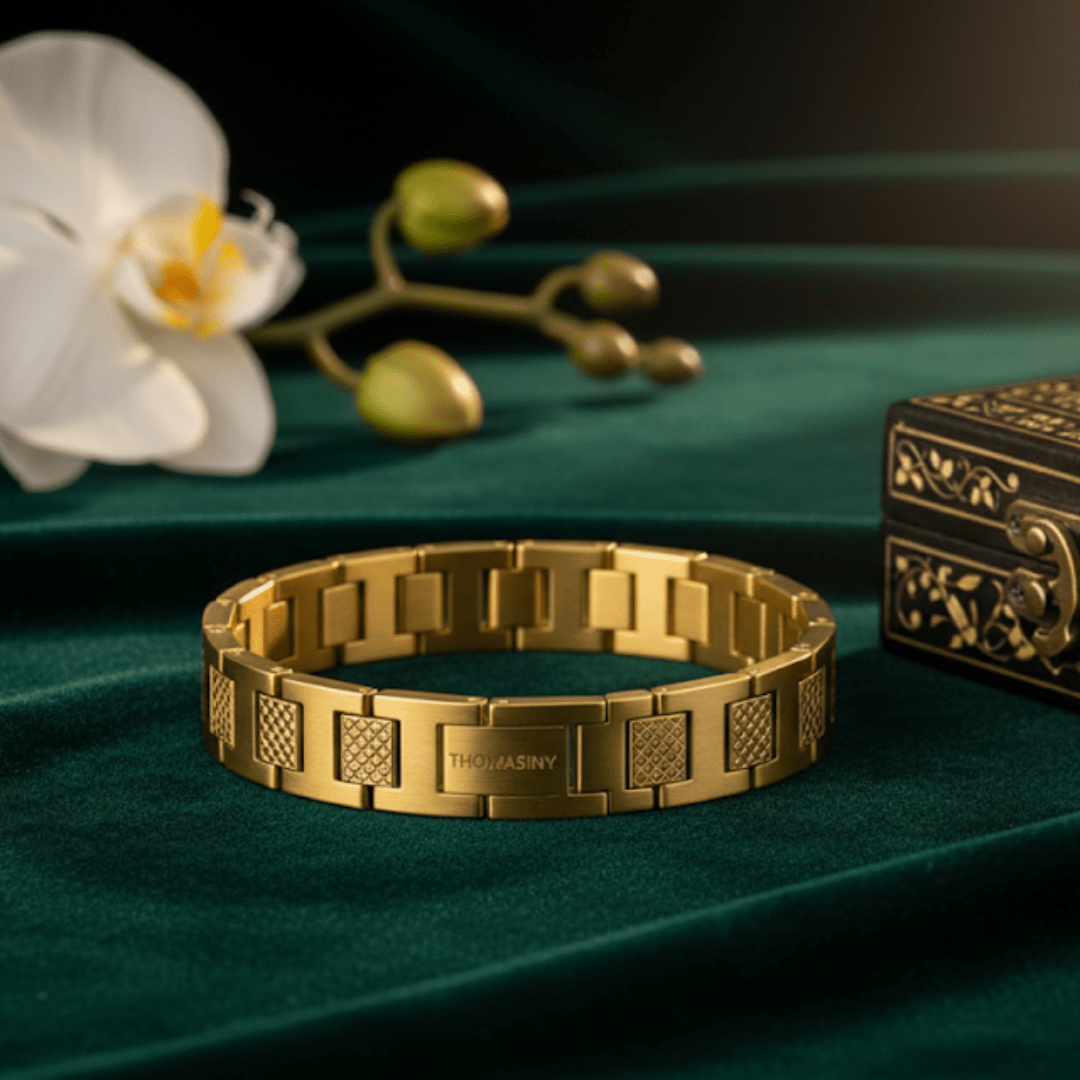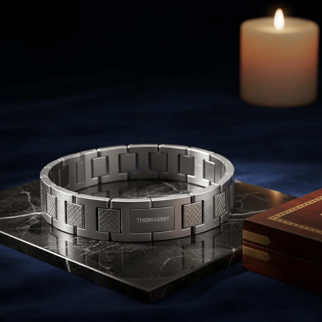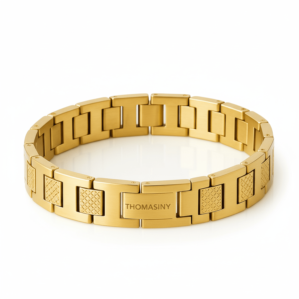 Ontdek de Thomasiny Apex Armband, vervaardigd uit hoogwaardig 316L roestvrij staal – hét materiaal dat bekend staat om zijn duurzaamheid, luxe uitstraling en huidvriendelijkheid. Deze armband is ontworpen voor de moderne man die kiest voor stijl, kracht en kwaliteit.