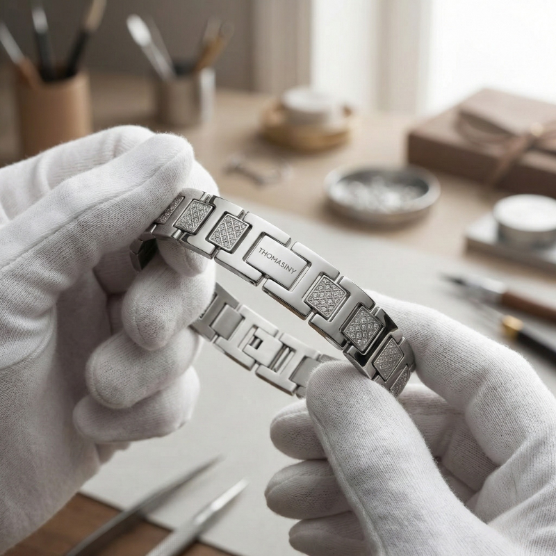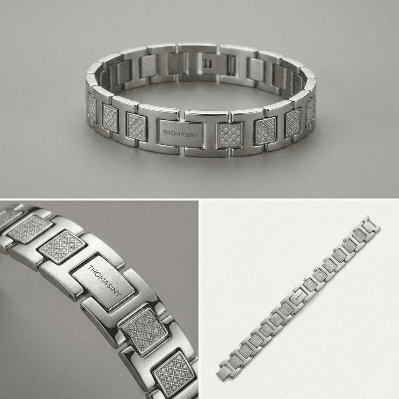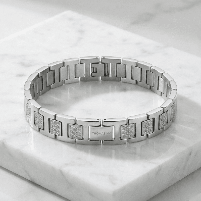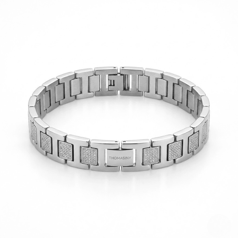 De Thomasiny Apex Heren Armband is gemaakt van duurzaam roestvrij staal, waardoor hij lang meegaat en niet zal verkleuren. De armband is voorzien van een stevige sluiting die ervoor zorgt dat hij goed op zijn plek blijft zitten. Met zijn tijdloze uitstraling is deze armband een waardevolle toevoeging aan elke sieradencollectie.