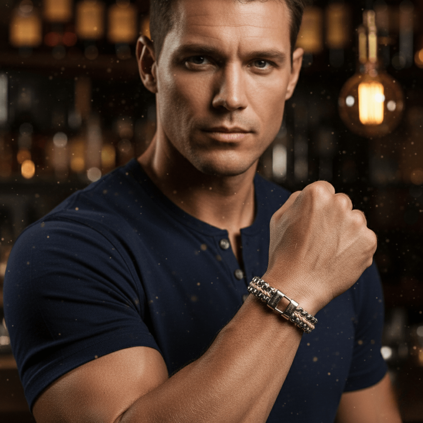 Of je nu een casual outfit wilt versterken of indruk wilt maken bij een formele gelegenheid, de Catena Fortissima is jouw ultieme accessoire. De elegante combinatie van materialen en het robuuste ontwerp maken deze armband veelzijdig en onmisbaar in elke garderobe.