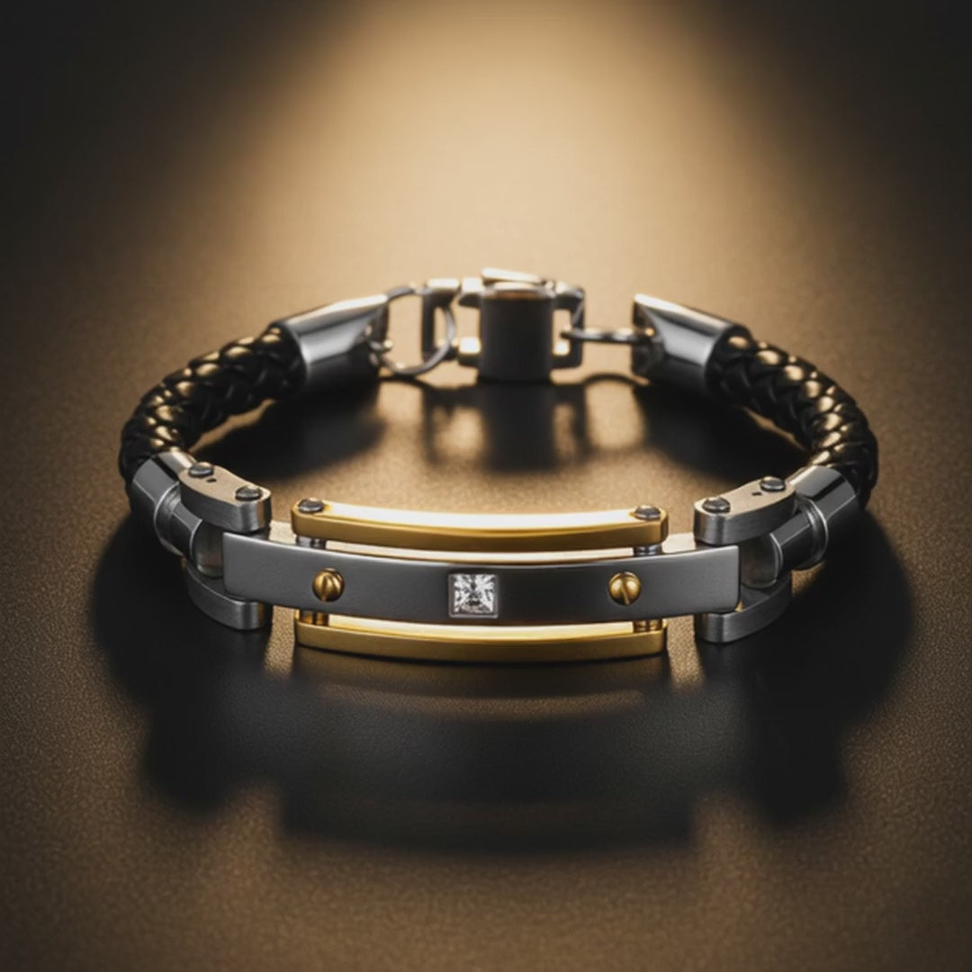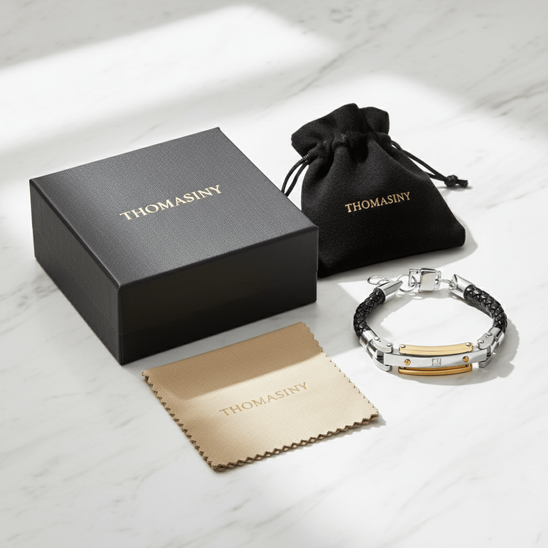 Ontdek de Cristalle Sicuro armband van Thomasiny: een meesterwerk waarin kracht en elegantie samenkomen. Vervaardigd van massief 316L roestvrij staal en verfijnd met handgevlochten echt leer – ontworpen voor wie zijn stijl serieus neemt.