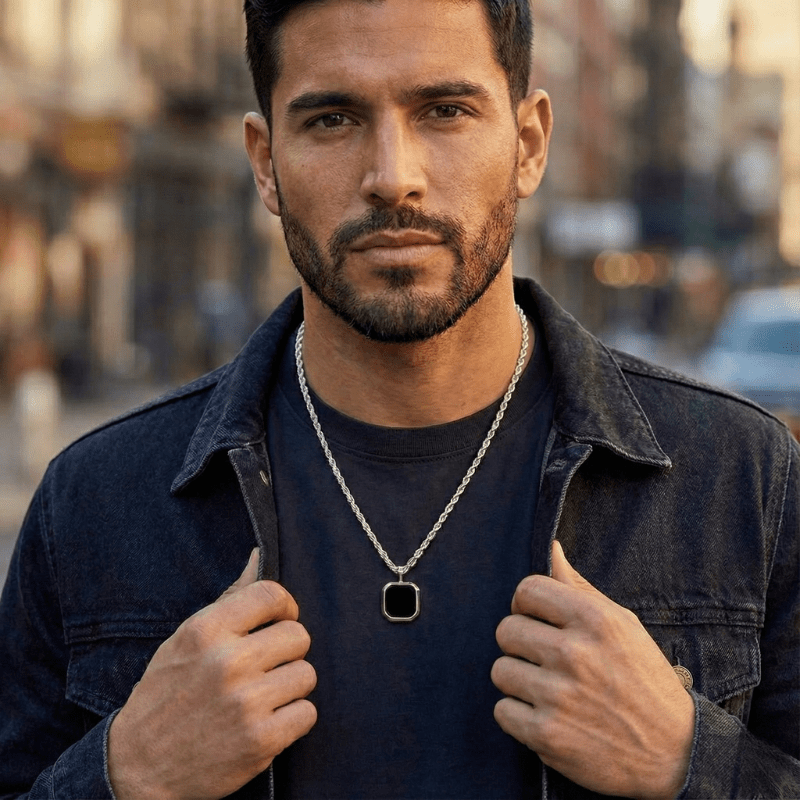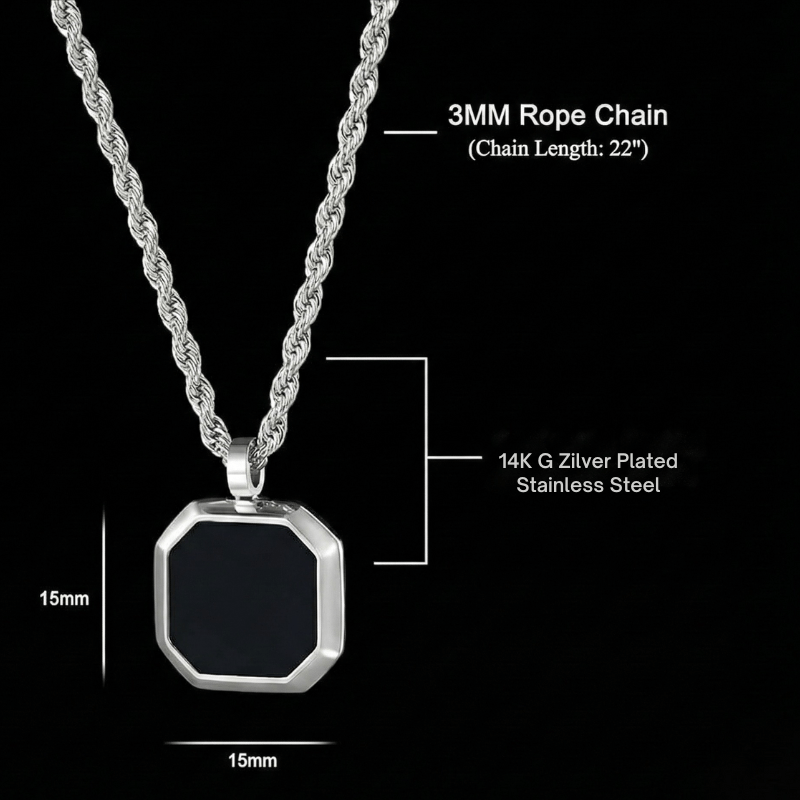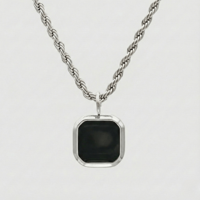 De Thomasiny Black Vanta staat voor pure kracht en verfijnde luxe. Deze statement ketting combineert een diepzwarte, strak geslepen steen met een moderne goudkleurige ketting, wat zorgt voor een krachtig contrast en een exclusieve uitstraling. Het geometrische design vangt het licht subtiel en geeft elke outfit direct meer diepte en karakter.