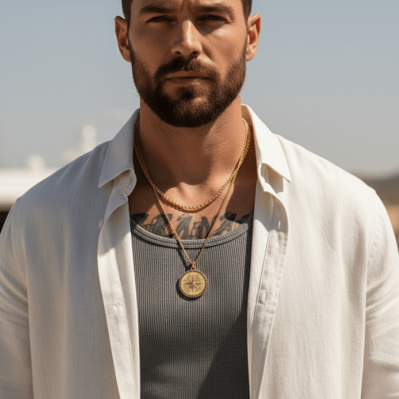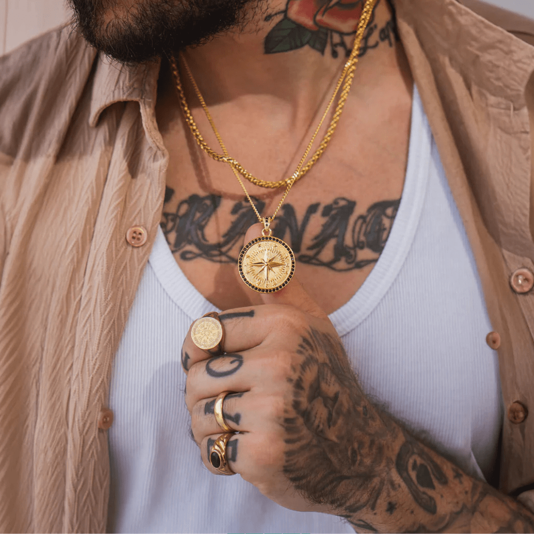 GOUDEN KOMPAS – INCLUSIEF LUXE CUBAN KETTING (55 CM)