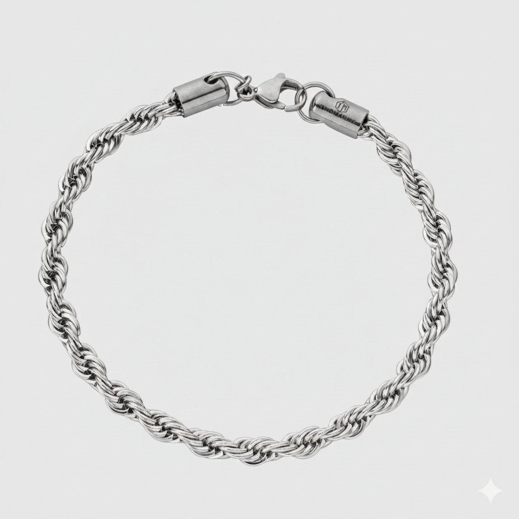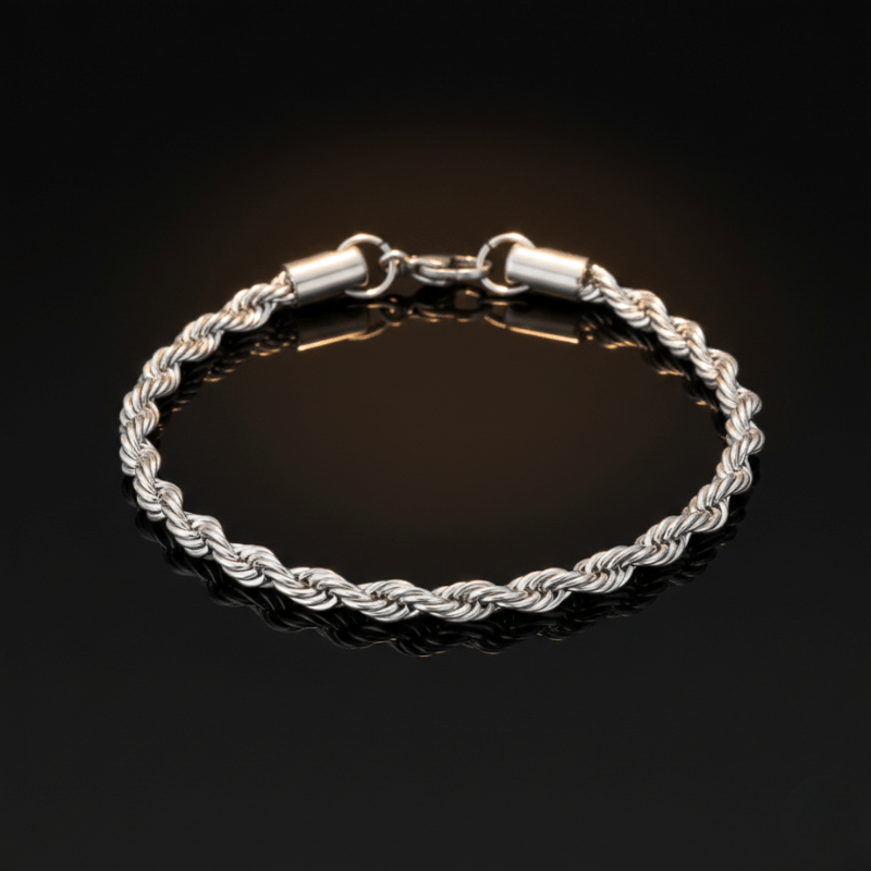 De Rope Bracelet 5mm Zilver combineert een klassiek rope-design met een moderne, krachtige uitstraling. De verfijnde 5mm gevlochten structuur vangt het licht subtiel en geeft elke outfit direct meer diepte en karakter.
