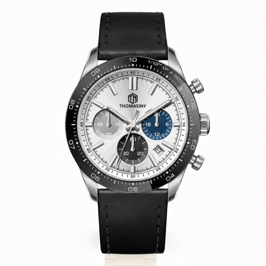 Is de THOMASINY® CHRONOGRAAF NIGHTFALL BLACK geschikt voor alle gelegenheden? Absoluut! Of je nu een horloge zoekt voor formele evenementen of voor dagelijks gebruik, de NIGHTFALL BLACK biedt de perfecte combinatie van prestatie en stijl, waardoor het de ideale keuze is voor elke situatie.