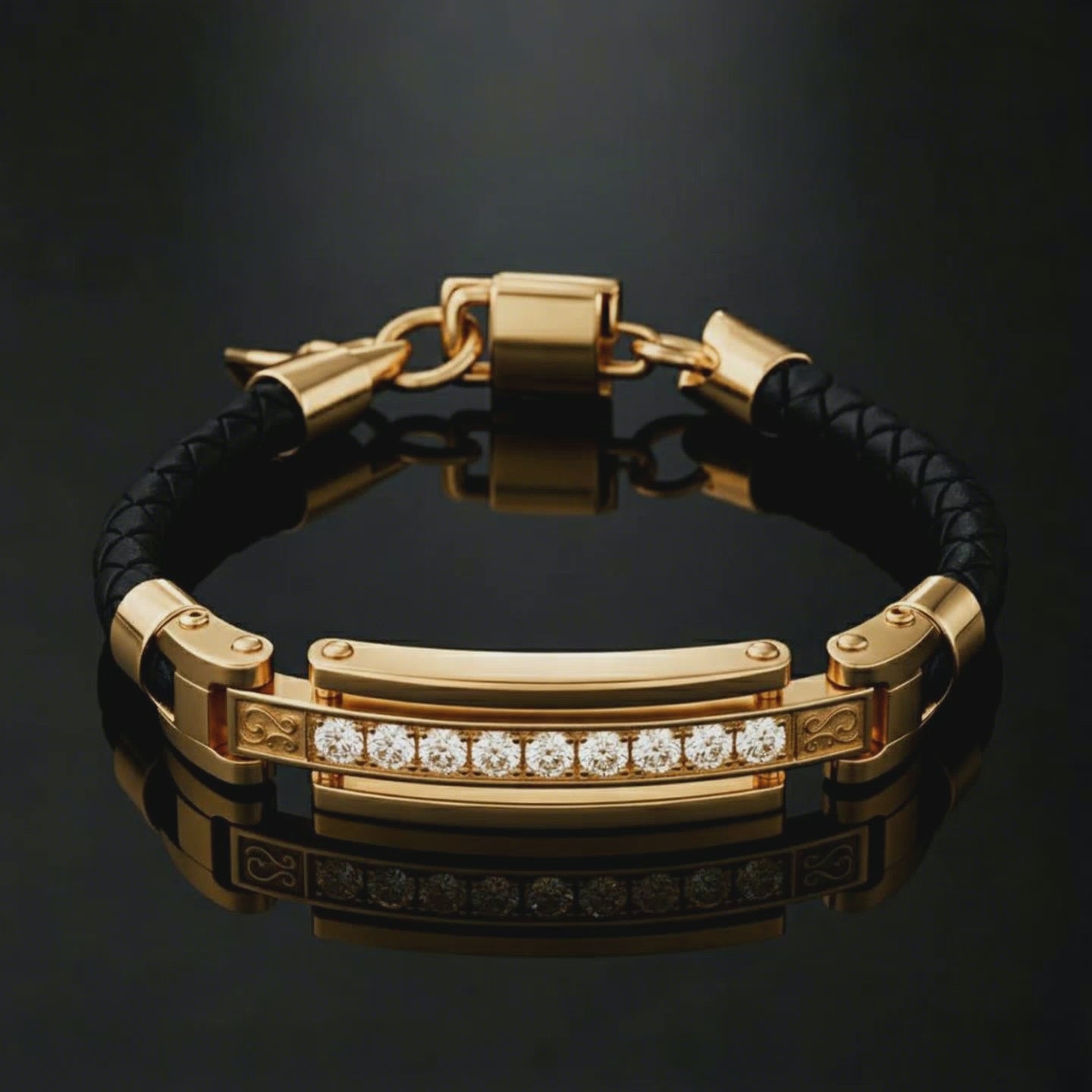 Het centrale design is afgewerkt met 9 briljant geslepen zirconia-stenen, zorgvuldig geplaatst voor maximale schittering met behoud van een krachtige, mannelijke uitstraling.