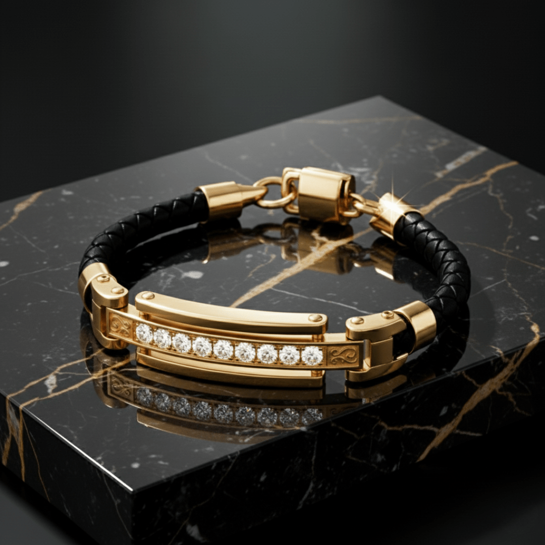 De combinatie van hoogwaardig roestvrij staal (RVS) en handgevlochten echt leer creëert een perfecte balans tussen robuuste kracht en verfijnde luxe.